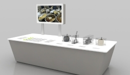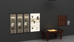 書桌上設置書模型,投影機可在書模型上投影出不同的藥典書籍,如《詩經》、《山海經》、《神農本草經》、《雷公炮炙論》、《太平惠民和劑局方》、《本草綱目》。參與者通過手勢選擇想要了解的藥典書籍,書模型上將投影呈現出選中書籍的內容。參與者可通過手勢控制書頁左右翻動,觀看書籍中記載的內容,了解各種藥典書籍的藥物知識。書模型兩邊設有幾本藥典書籍的實體書。