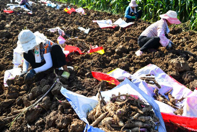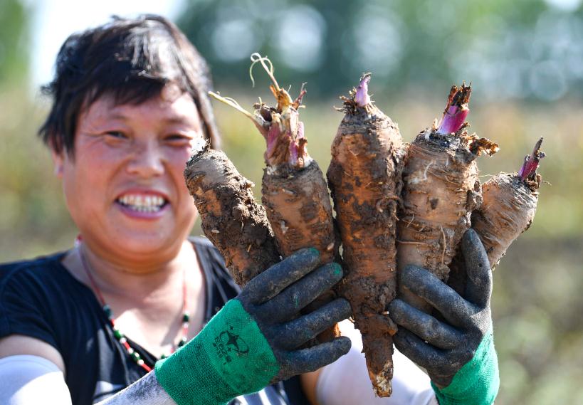初秋時(shí)節(jié),“藥材之鄉(xiāng)”安徽省亳州市種植的中藥材白芷迎來收獲期。(劉勤利 孫麗敏 攝)