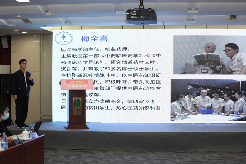 圖為中國(guó)行政管理學(xué)會(huì)專職副秘書長(zhǎng)、研究員劉杰對(duì)推薦藥師事跡進(jìn)行點(diǎn)評(píng)。