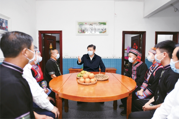 2020年9月16日至18日,中共中央總書記、國家主席、中央軍委主席習(xí)近平在湖南考察。這是16日下午,在郴州市汝城縣文明瑤族鄉(xiāng)沙洲瑤族村,習(xí)近平同村民朱小紅一家拉家常。新華社記者 謝環(huán)馳/攝