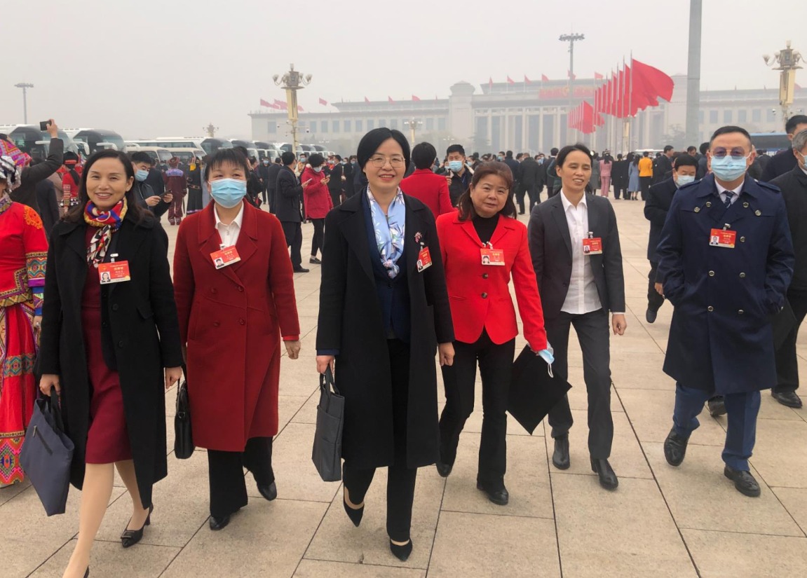 “三八”婦女節(jié)前夕,全國政協(xié)醫(yī)藥衛(wèi)生界別的女委員們在小組會召開之前討論政府工作報告。 (肖新月 供圖)