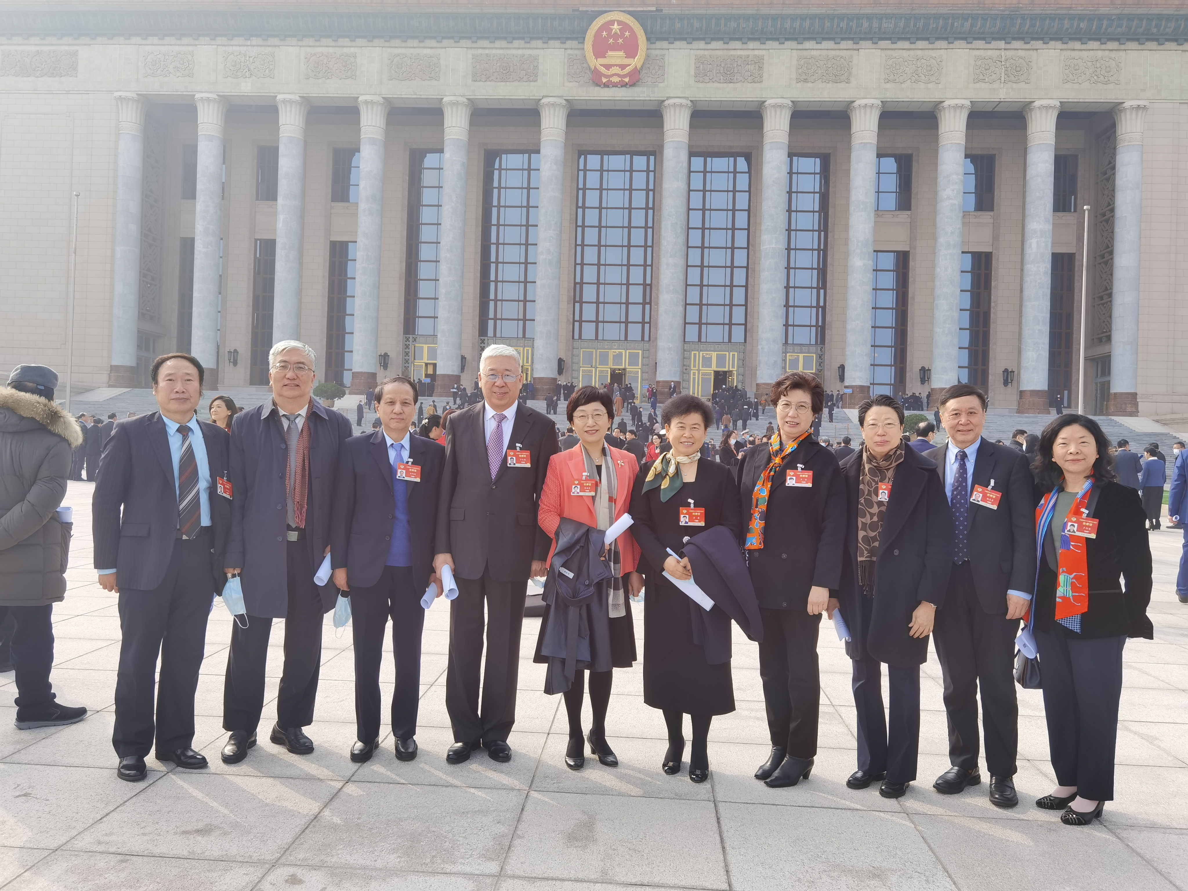 3月4日下午,全國政協(xié)十三屆四次會議在北京人民大會堂開幕。圖為部分醫(yī)衛(wèi)屆委員在步入會場前合影留念 。(岳秉飛 攝)