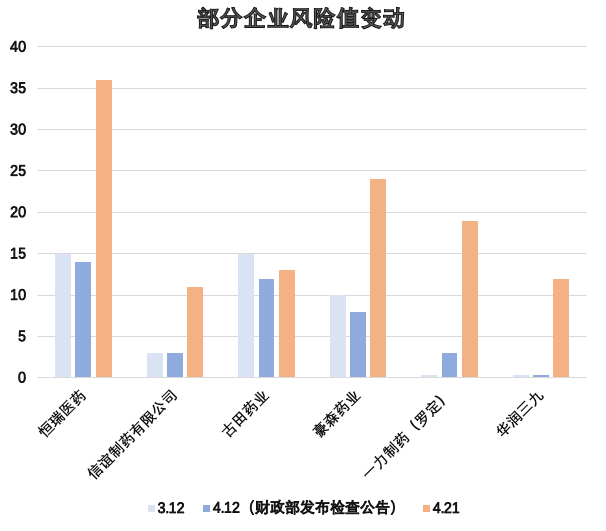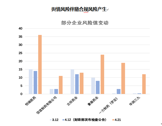 ????據(jù)中國(guó)健康傳媒集團(tuán)中國(guó)藥品風(fēng)險(xiǎn)預(yù)警平臺(tái)監(jiān)測(cè),財(cái)政部公布檢查結(jié)果后,違規(guī)企業(yè)風(fēng)險(xiǎn)值大幅增長(zhǎng)(如圖所示),國(guó)內(nèi)知名藥企牽涉其中更是引發(fā)輿論一片嘩然。