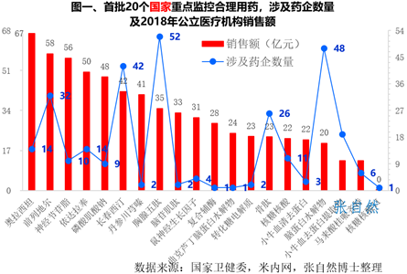 2019年7月1日,《第一批國(guó)家重點(diǎn)監(jiān)控合理用藥藥品目錄(化藥及生物制品)》正式落地,共有20個(gè)品種,但沒(méi)有中藥。這20個(gè)品種共涉及200多家企業(yè),2018年全國(guó)公立醫(yī)療機(jī)構(gòu)的銷(xiāo)售額高達(dá)650億元,其中神經(jīng)節(jié)苷脂、奧拉西坦、前列地爾、依達(dá)拉奉均超50億元。
