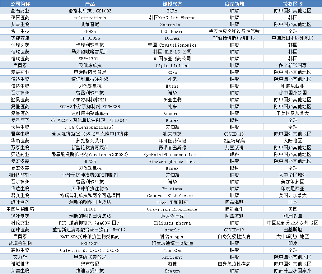 2020-2021.8.30 License out項目不完全統(tǒng)計