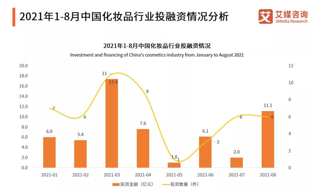 2021年1-8月中國化妝品行業(yè)投融資情況分析