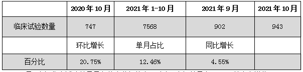 表3. 10月臨床試驗適應(yīng)癥數(shù)據(jù)