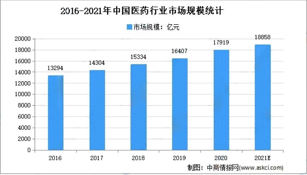 近年來,我國醫(yī)藥市場保持著超過全球醫(yī)藥市場的增速增長。根據(jù)Frost & Sullivan統(tǒng)計,2016-2020年,我國醫(yī)藥市場規(guī)模從13294億元增長至17919億元。中商產(chǎn)業(yè)研究院預(yù)測,2021年我國醫(yī)藥市場將會繼續(xù)保持增長趨勢,市場規(guī)模將達18858億元;從細分市場規(guī)模來看,2021年我國化學(xué)藥品、中藥、生物制劑市場規(guī)模將分別達到1255億美元、753億美元、635億美元。