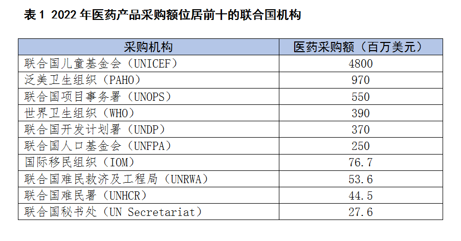 從采購機(jī)構(gòu)來看,聯(lián)合國兒童基金會(UNICEF)一直是健康產(chǎn)品最大的采購機(jī)構(gòu),2022年采購額達(dá)48億美元;泛美衛(wèi)生組織(PAHO)以9.7億美元位居第二;聯(lián)合國項(xiàng)目事務(wù)署(UNOPS)以5.5億美元位列第三。