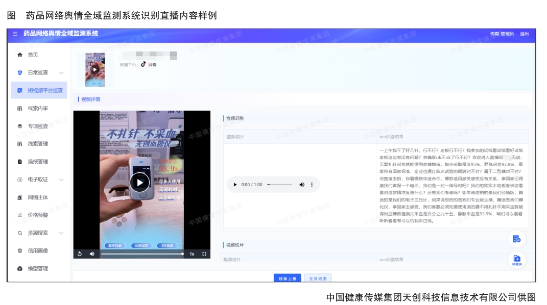 為高質(zhì)量服務(wù)醫(yī)療器械網(wǎng)絡(luò)銷售監(jiān)管工作,強(qiáng)化違法風(fēng)險(xiǎn)挖掘、分析和處置能力,中國(guó)健康傳媒集團(tuán)(以下簡(jiǎn)稱傳媒集團(tuán))發(fā)揮技術(shù)優(yōu)勢(shì),于2024年初正式上線藥品(包括醫(yī)療器械、化妝品)網(wǎng)絡(luò)輿情全域監(jiān)測(cè)系統(tǒng)(以下簡(jiǎn)稱監(jiān)測(cè)系統(tǒng)),采集范圍涵蓋輿情數(shù)據(jù)、電商平臺(tái)數(shù)據(jù)、企業(yè)數(shù)據(jù)、短視頻數(shù)據(jù)和直播數(shù)據(jù)等公開(kāi)數(shù)據(jù),努力以網(wǎng)絡(luò)監(jiān)測(cè)技術(shù)賦能監(jiān)管能力提升。一年多來(lái),傳媒集團(tuán)持續(xù)開(kāi)展監(jiān)測(cè)系統(tǒng)更新優(yōu)化工作,擴(kuò)充平臺(tái)監(jiān)測(cè)范圍,強(qiáng)化對(duì)違規(guī)行為的識(shí)別能力。