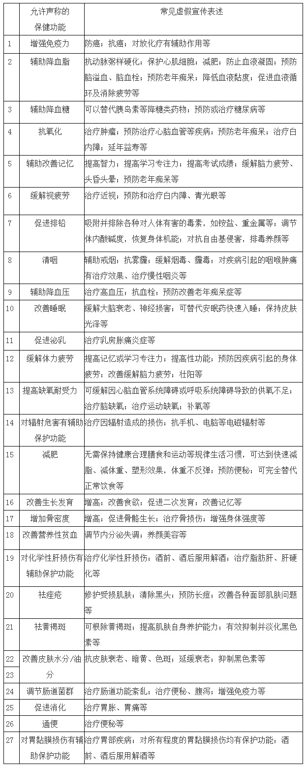 常見(jiàn)的保健食品功能聲稱虛假宣傳表述