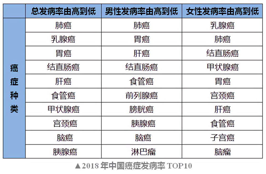 而在中國(guó),肺癌的發(fā)病率也是最高的。此外,男性胃癌、肝癌、結(jié)直腸癌、食管癌;女性乳腺癌、結(jié)直腸癌、甲狀腺癌、胃癌等也較為高發(fā)。