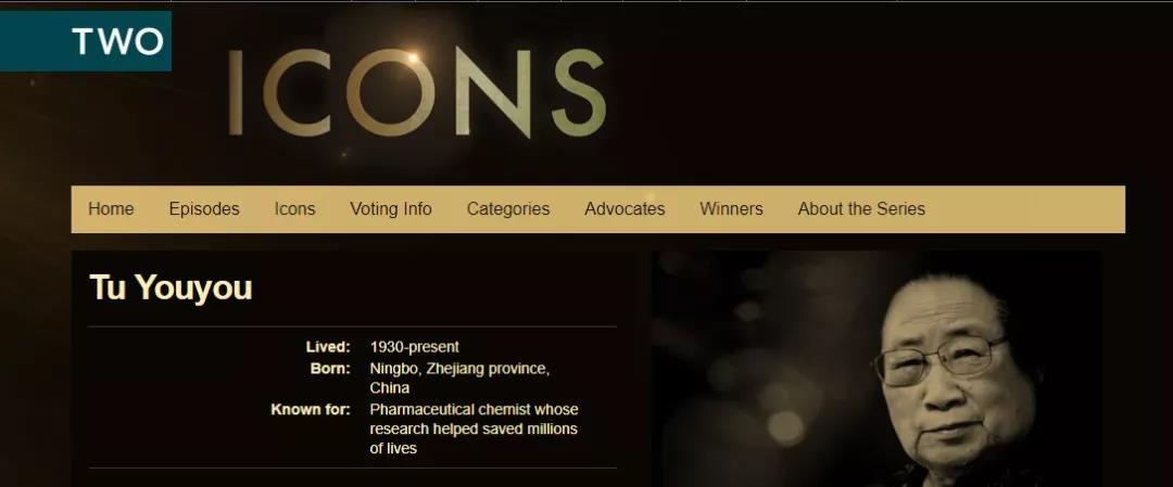 “ICONS”欄目是這樣介紹屠呦呦的