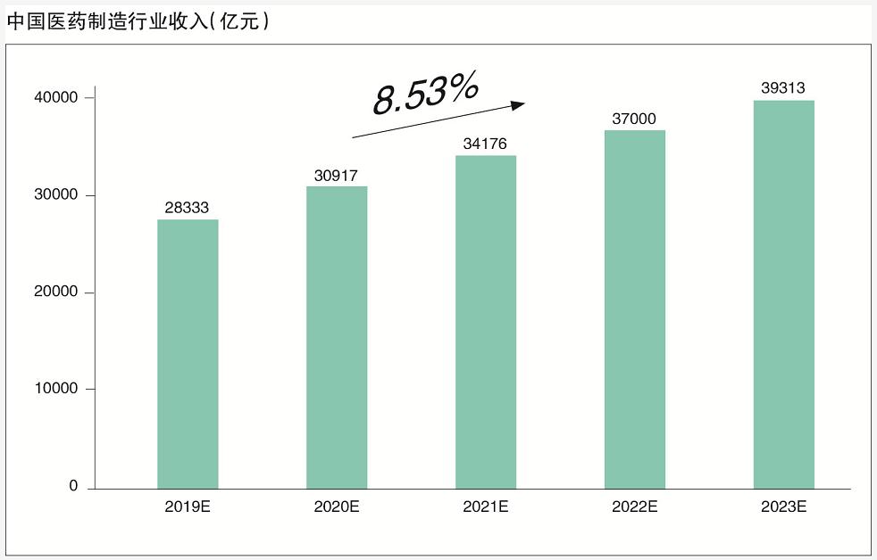 在中國(guó)老齡化進(jìn)程加快、全面二孩政策開(kāi)放、政府持續(xù)加大對(duì)醫(yī)療衛(wèi)生事業(yè)的投入、國(guó)民人均可支配收入增加以及大健康產(chǎn)業(yè)推動(dòng)醫(yī)藥消費(fèi)升級(jí)等多重因素的作用下,中國(guó)醫(yī)藥產(chǎn)品需求市場(chǎng)不斷增長(zhǎng),醫(yī)藥行業(yè)持續(xù)穩(wěn)定發(fā)展。