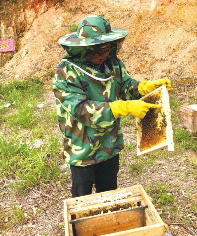 據(jù)介紹,生態(tài)蜂業(yè)分“兩條腿走路”,靠近大桂山山脈的生產(chǎn)基地占地1100畝,蜜蜂可就近采集花粉釀蜜;繁殖基地占地10畝,蜜蜂可出售給想自行養(yǎng)蜂的村民。