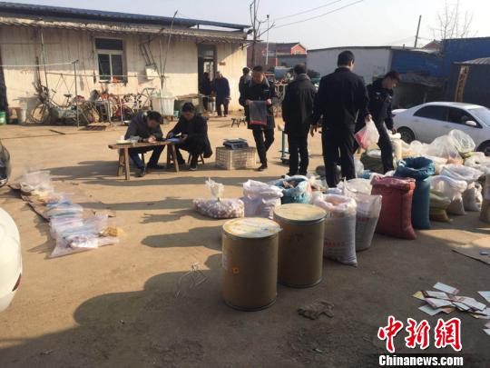 為了追根溯源,徹底斬?cái)喾欠ㄉa(chǎn)、銷售假藥的利益鏈條,今年1月17日,專案組民警在河南省洛陽市經(jīng)過14天的跟蹤守候、艱苦偵查,最終找到“制藥廠”所在位置為洛龍區(qū)一個(gè)偏僻村莊的一處自建房。在當(dāng)?shù)鼐降拇罅χС窒?,專案組民警順利進(jìn)入該自建樓窩點(diǎn)并控制現(xiàn)場(chǎng),抓獲正在生產(chǎn)假藥的檀某某等8名犯罪嫌疑人,查獲大量假藥成品、半成品及包裝材料。其中,西地那非40公斤,假藥85種118萬粒,假藥包裝盒20余萬件,大藥品包裝35萬余件及封裝機(jī)等涉案物品。