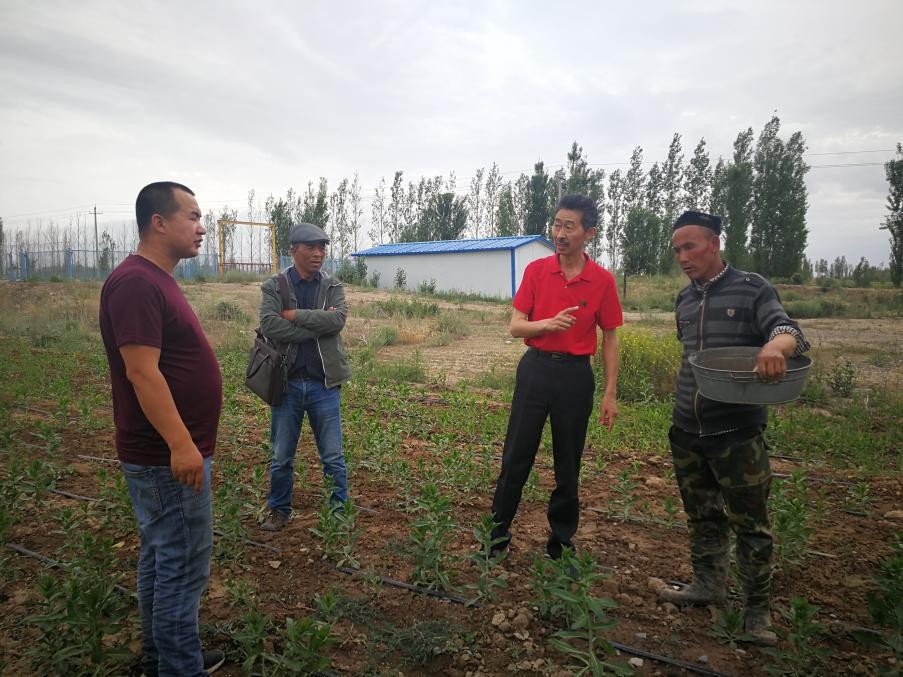 圖6 筆者(右二)在新疆伊犁州察布查爾縣海努克鄉(xiāng)新疆云光紅花種植基地考察。