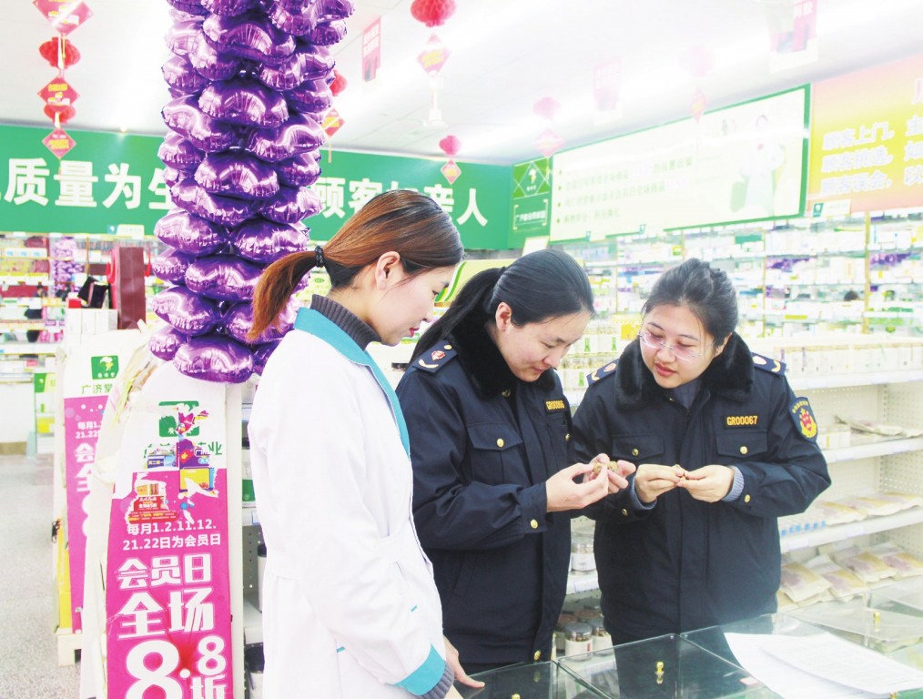 春節(jié)期間,山東省廣饒縣市場(chǎng)監(jiān)管局組織執(zhí)法人員對(duì)轄區(qū)各藥品零售企業(yè)的經(jīng)營(yíng)規(guī)范、購(gòu)銷環(huán)節(jié)、含特殊藥品復(fù)方制劑管理登記等情況進(jìn)行檢查,保障群眾節(jié)日期間用藥安全。孫文者 聶威威 攝