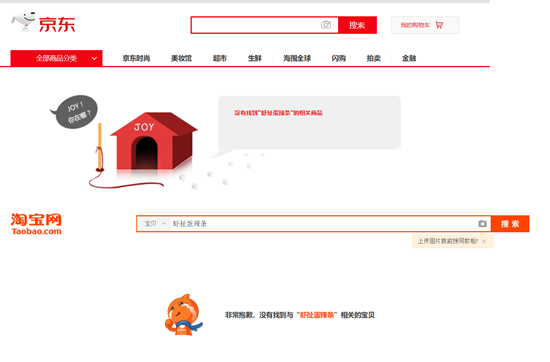 節(jié)目播出后,在“淘寶”“京東”“蘇寧易購”等電商平臺上搜索,未能搜到有關(guān)“蝦扯蛋辣條”的相關(guān)產(chǎn)品。(郭厚杰 輯)