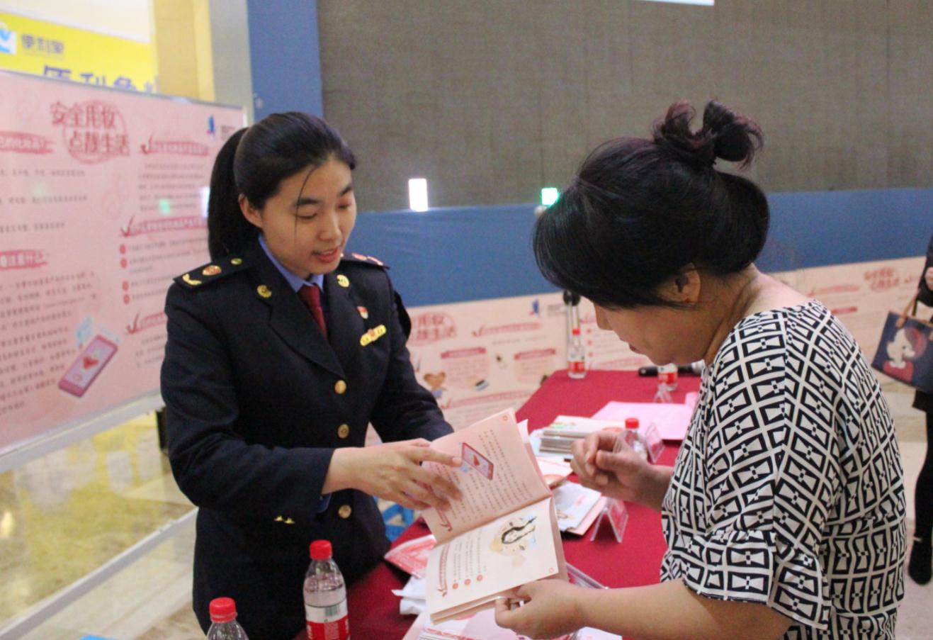 市場監(jiān)管部門相關(guān)人員與群眾在活動現(xiàn)場交流化妝品相關(guān)知識。陳陽/攝