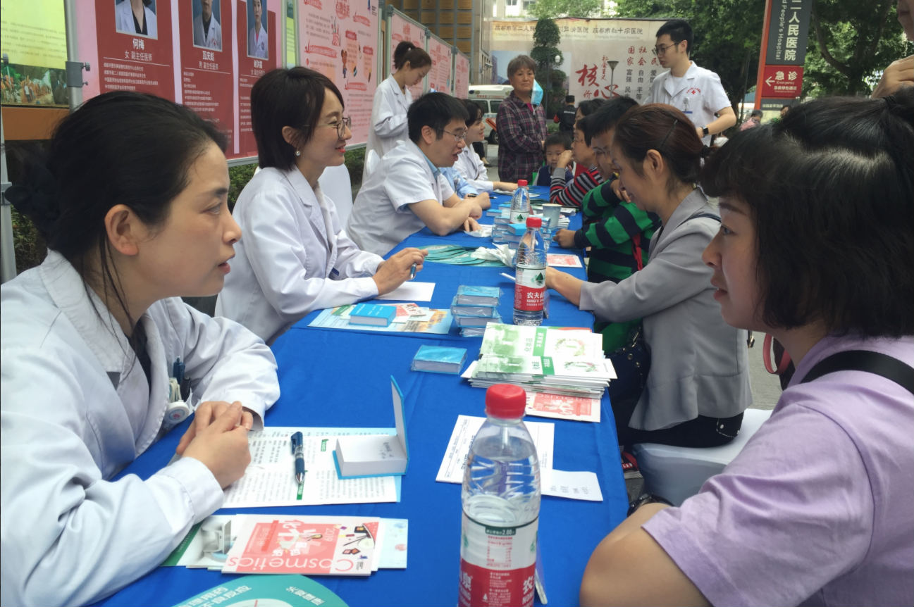上午9點30分,成都市第二人民醫(yī)院門診大樓廣場的化妝品科普知識展板吸引了不少市民觀看,化妝品不良反應法律法規(guī)及科普知識宣傳臺被市民們圍得水泄不通,大家紛紛就如何選擇適合自己的化妝品以及化妝品成分、功效請專家解惑答疑。