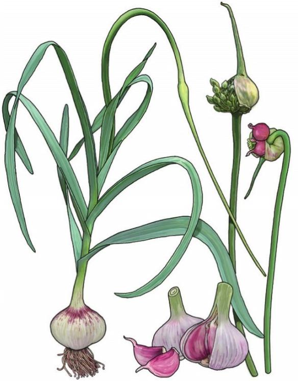 本品呈類球形。表面被白色、淡紫色或紫紅色的膜質鱗皮。頂端略尖,中間有殘留花葶,基部有多數(shù)須根痕。剝去外皮,可見獨頭或6~16 個瓣狀小鱗莖,著生于殘留花莖基周圍。鱗莖瓣略呈卵圓形,外皮膜質,先端略尖,一面弓狀隆起,剝去皮膜,白色,肉質。氣特異,味辛辣,具刺激性。