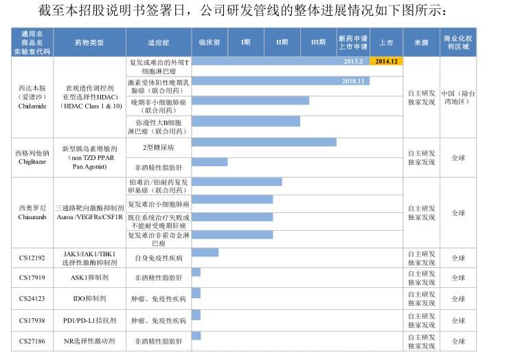 微芯生物目前僅有西達(dá)本胺一個(gè)產(chǎn)品上市。該品上市后,公司收入和利潤規(guī)模迅速提升,2016年、2017年和2018年,西達(dá)本胺片的產(chǎn)品銷售收入和西達(dá)本胺境外專利授權(quán)許可收入的合計(jì)分別為8529.96萬元、11028.87萬元和14651.14萬元,占公司同期營業(yè)收入的比例分別為99.92%、99.81%和99.20%。此外,該公司目前具有14個(gè)在研項(xiàng)目儲(chǔ)備。