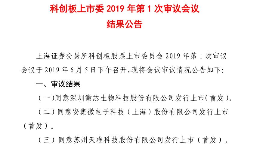 中國(guó)食品藥品網(wǎng)訊(記者 落楠) 6月5日下午,上海證券交易所科創(chuàng)板股票上市委員會(huì)召開(kāi)2019年第1次審議會(huì)議,審議并同意深圳微芯生物科技股份有限公司、安集微電子科技(上海)股份有限公司和蘇州天準(zhǔn)科技股份有限公司三家企業(yè)的發(fā)行上市申請(qǐng)。接下來(lái)按照相關(guān)流程,交易所將向證監(jiān)會(huì)報(bào)送審核意見(jiàn)。