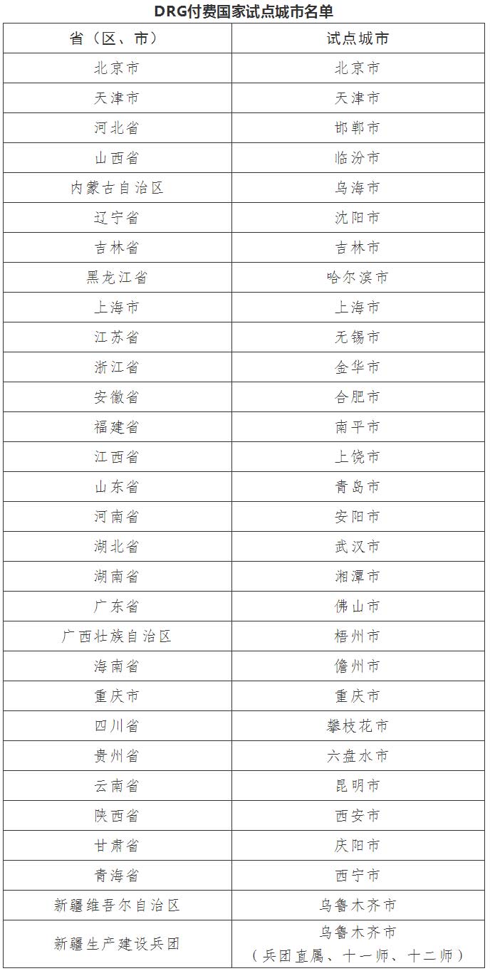 1.DRG付費(fèi)國(guó)家試點(diǎn)城市名單