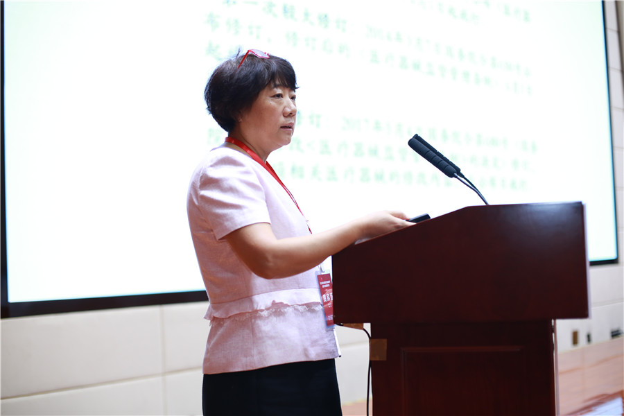 圖為國家藥監(jiān)局政策法規(guī)司副司長吳利雅作題為“加強完善醫(yī)療器械法規(guī)制度 助力行業(yè)健康發(fā)展”的主題發(fā)言。苗晨 攝