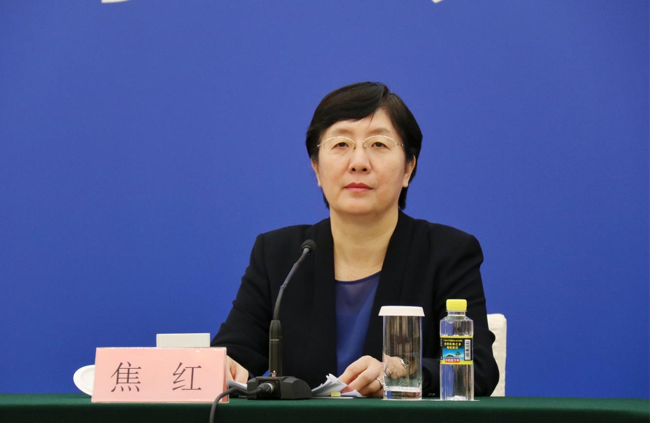 國家藥監(jiān)局局長焦紅出席新聞發(fā)布會并回答記者提問。陸悅 攝