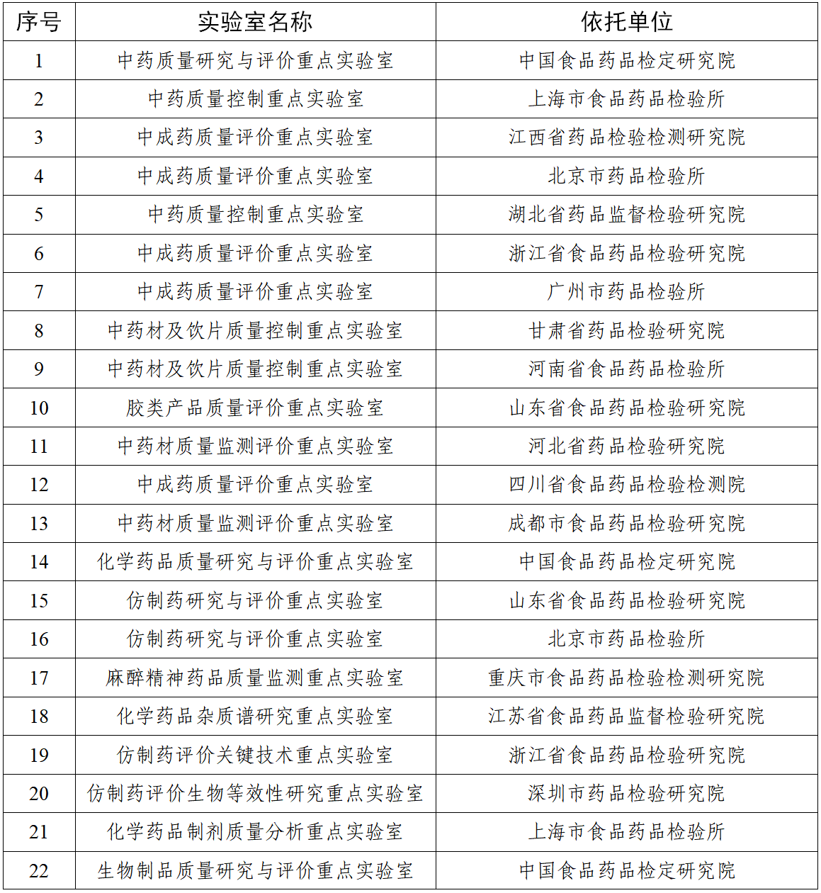 國(guó)家藥監(jiān)局首批重點(diǎn)實(shí)驗(yàn)室名單