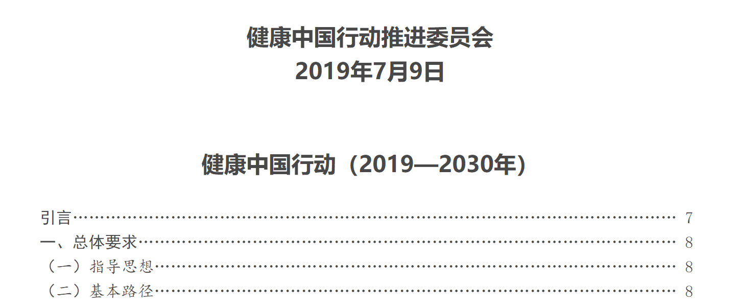 圖為《健康中國(guó)行動(dòng)(2019—2030)》正式印發(fā)截圖。