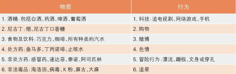 (一)易上癮的物質(zhì)及行為
